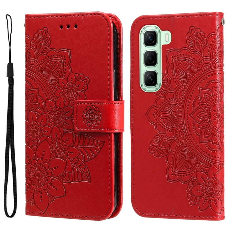Funda de Cuero con Relieve de Flores de Siete Pétalos para Infinix Hot 50 5G (Rojo)