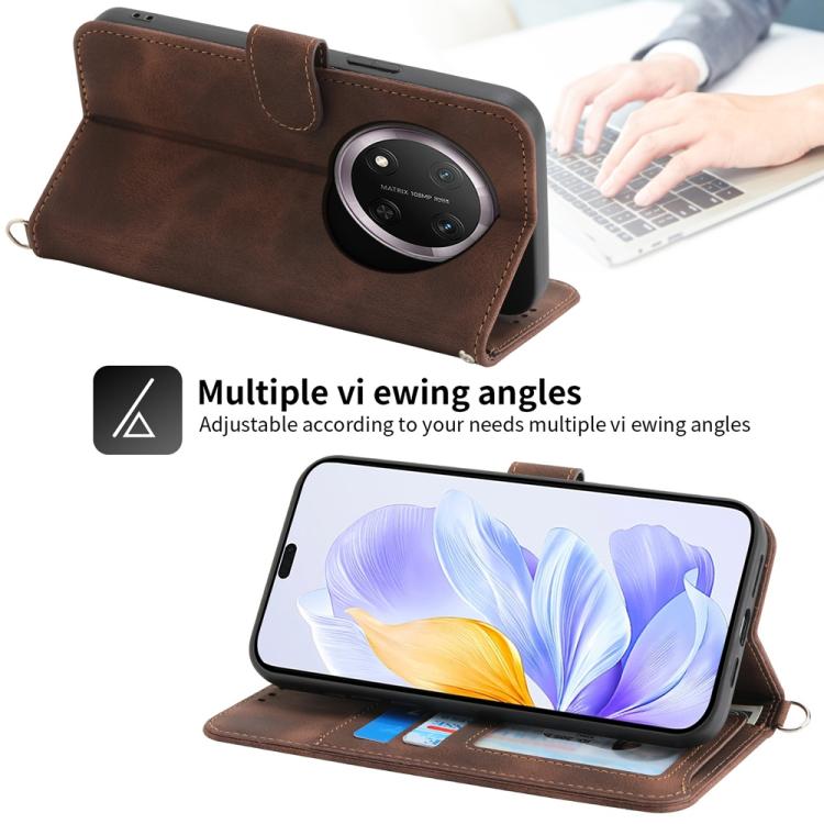 Funda de Cuero con Relieve de Flores para Honor X9C Global y Magic7 Lite (Marrón)