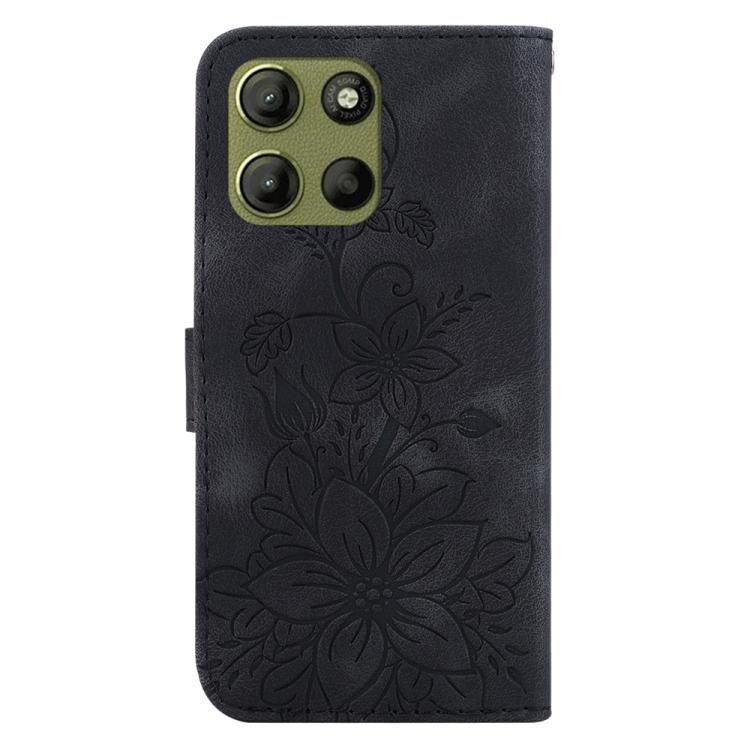 Funda de Cuero con Relieve de Lirio para Motorola Moto G15 (Negra)
