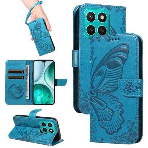 Funda de Cuero con Relieve Mariposa para Honor X8C 4G (Azul)