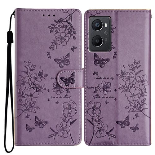 Funda de Cuero con Relieve de Mariposa y Flor para Oppo A36/A76/A96 (Morado)