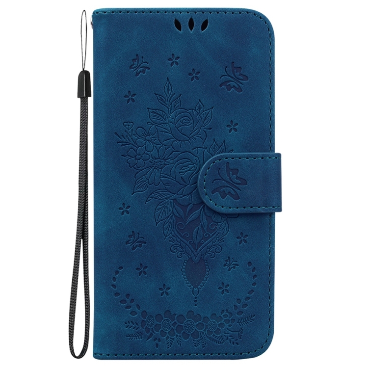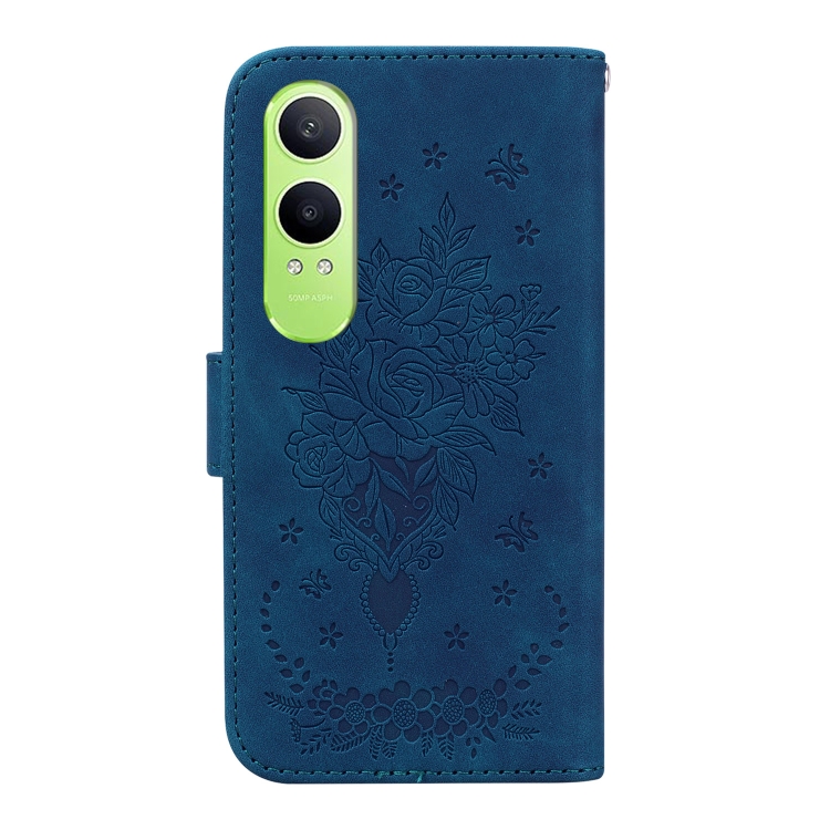 Funda de Cuero con Relieve Mariposa y Rosa para OnePlus Nord CE4 Lite (Azul)