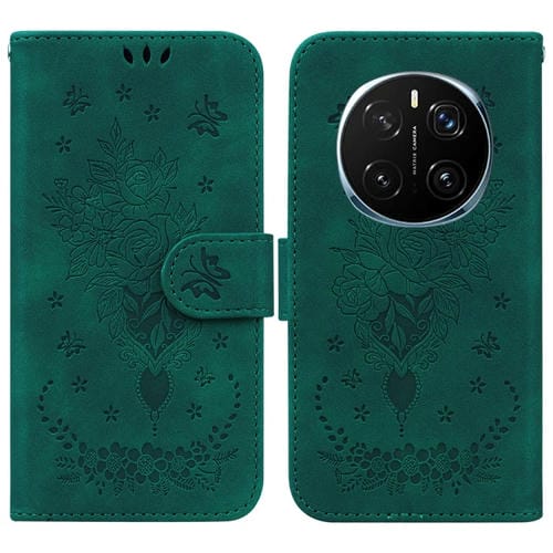 Funda de Cuero con Relieve Mariposa y Rosa para Honor Magic7 Pro (Verde)