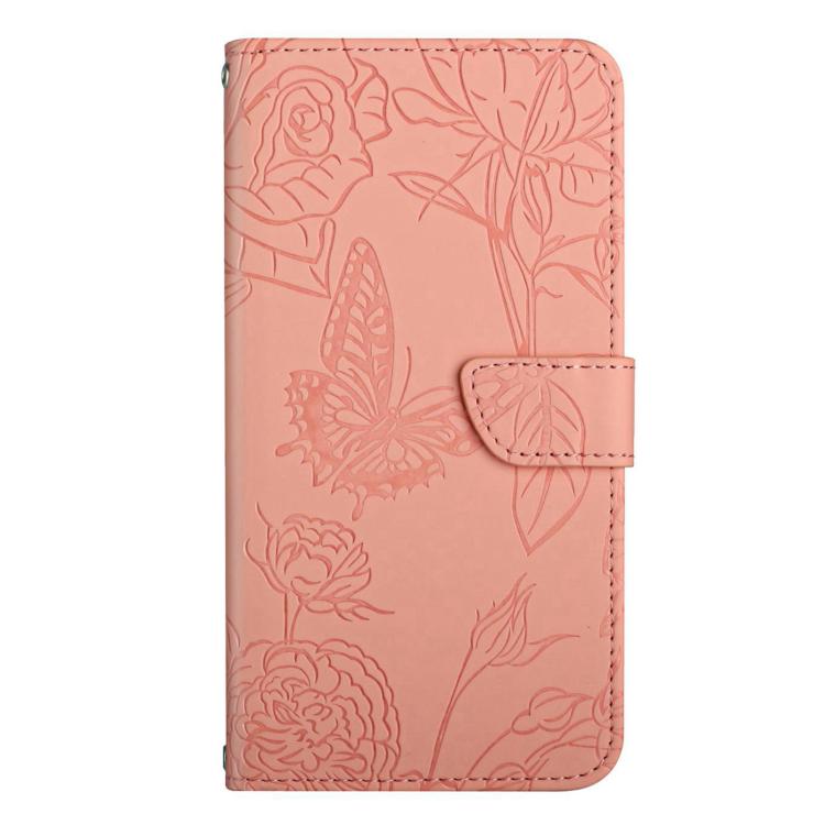 Funda de Cuero con Relieve Peonía y Mariposa para OnePlus 13R (Rosa)