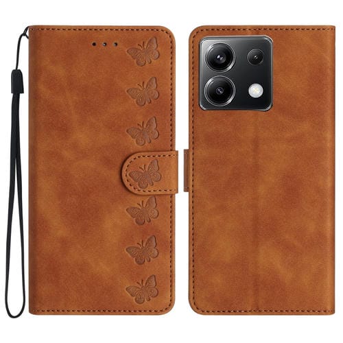 Funda de Cuero con Relieve de Siete Mariposas para Xiaomi Poco X6 (Marrón)