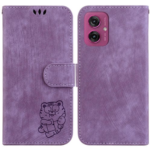 Funda de Cuero con Relieve de Tigre para Motorola Moto G55 (Morado)