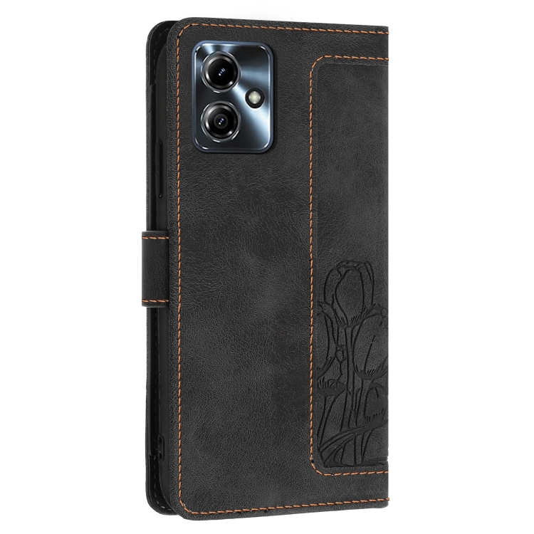 Funda de Cuero con Relieve de Tulipanes para Motorola Moto G14/G54 con Cordón (Negro)
