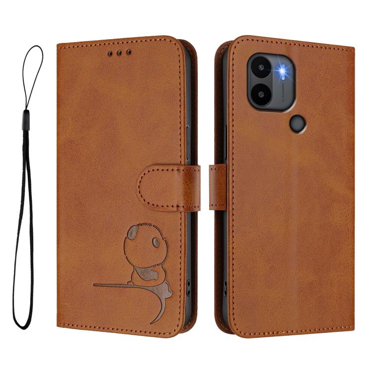 Funda de cuero con relieve RFID y cordón para Redmi A1+ / A2+ / Poco C50 / C51 (marrón)