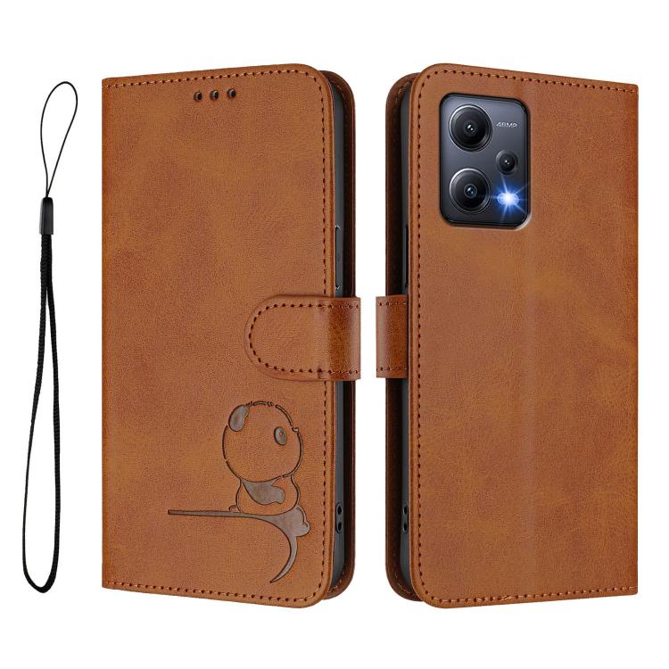Funda de cuero con relieve RFID y cordón para Redmi Note 12 5G Global/India (marrón)