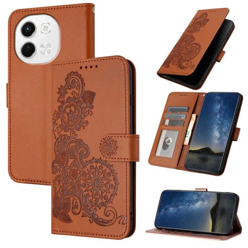 Funda de Cuero con Tapa con Relieve Flor de Datura para Tecno Pova 6 Neo 5G Spark 30 5G (Marrón)