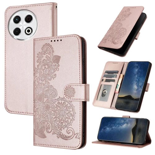 Funda de Cuero con Tapa con Relieve Flor de Datura para Tecno Spark 30 Pro 4G (Oro Rosa)