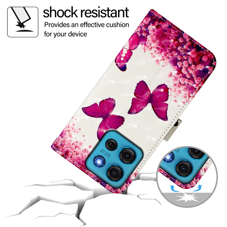 Funda de Cuero con Tapa Horizontal y Pintura 3D para Motorola Moto G75 5G (Mariposa Rosa)