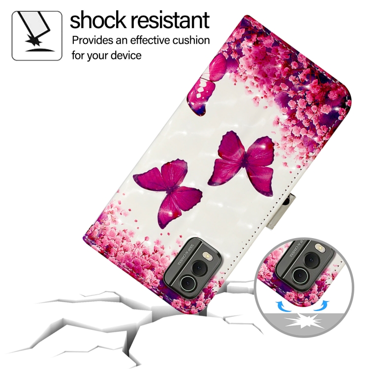Funda de Cuero con Tapa Horizontal y Pintura 3D para Nokia C32 (Mariposa Rosa)