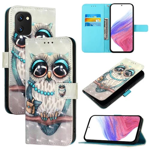 Funda de Cuero con Tapa Horizontal y Pintura 3D para Umidigi Power 7/7S (Búho Gris)