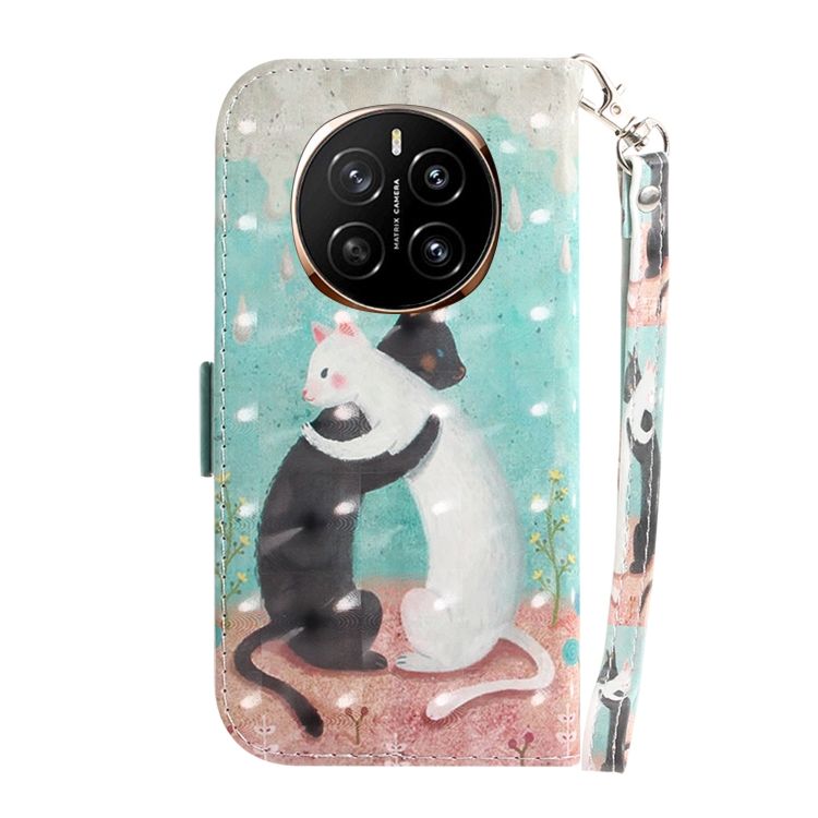 Funda de Cuero con Tapa Horizontal para Honor Magic7 (Gato Blanco y Negro)