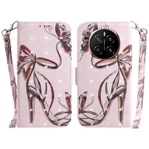 Funda de Cuero con Tapa Horizontal 3D para Honor Magic7 (Mariposa y Tacón Alto)