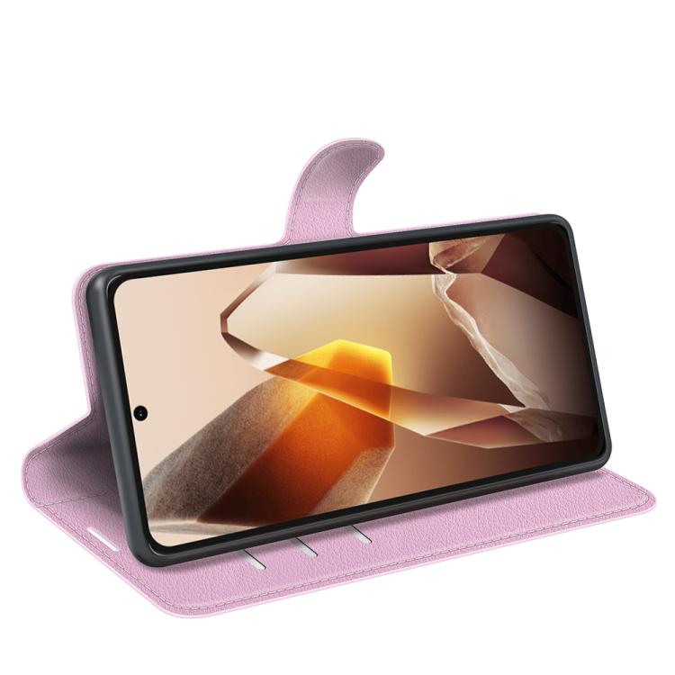 Funda de Cuero para OnePlus 13 con Tapa Horizontal, Textura de Lichi y Soporte (Rosa)