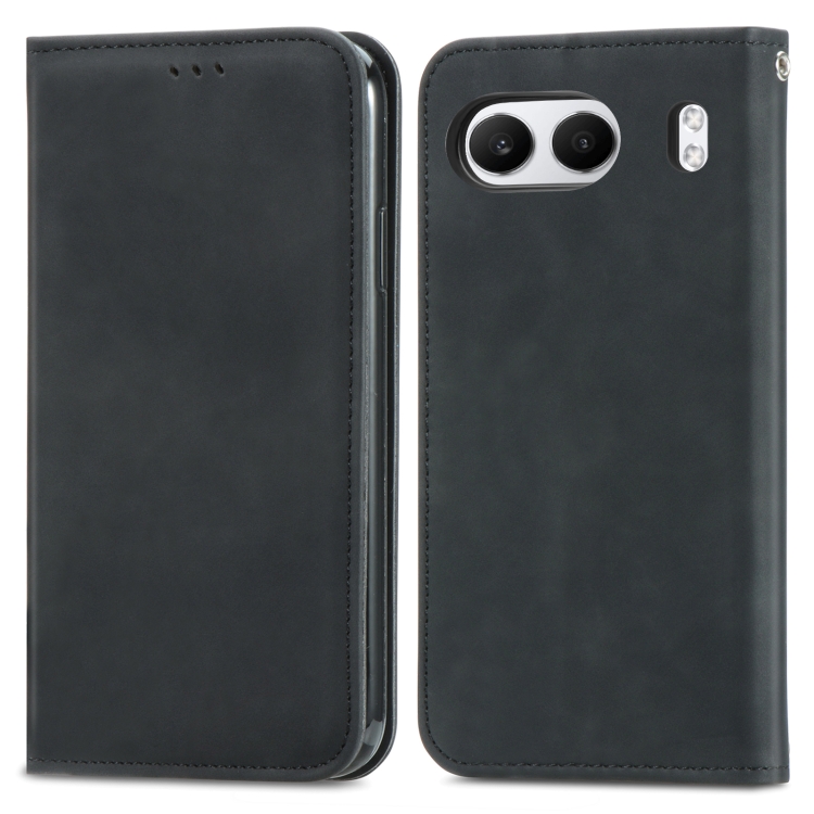 Funda de Cuero con Tapa Magnética y Tacto Retro para OnePlus Nord 4 (Negra)