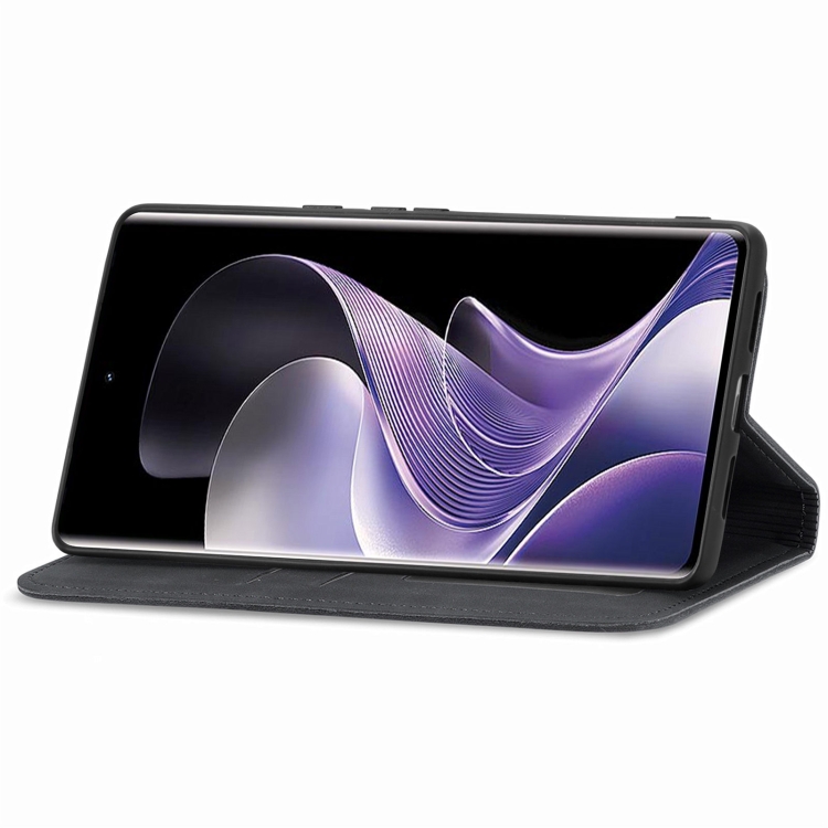 Funda de Cuero con Tapa Magnética y Tacto Retro para Vivo T3 Ultra (Negra)