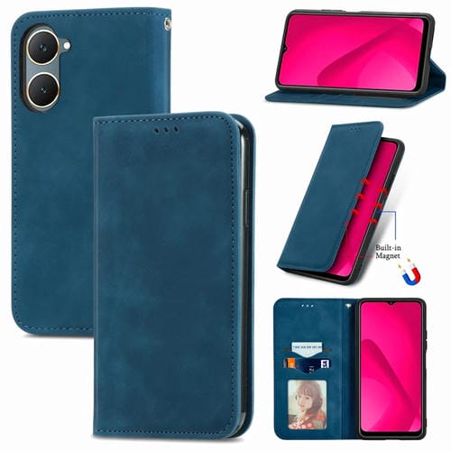 Funda de Cuero con Tapa Magnética y Tacto Retro para Vivo Y18E (Azul)