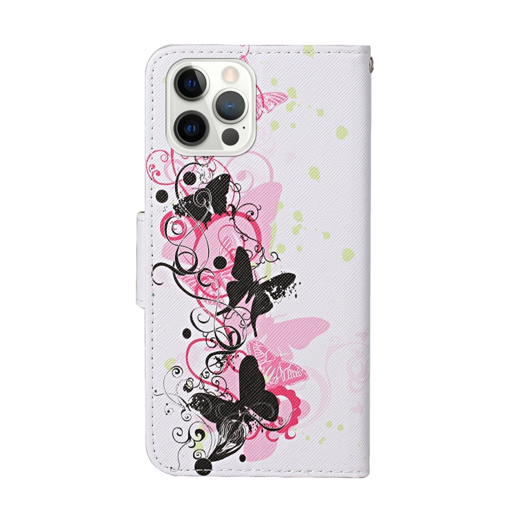 Funda de Cuero con Tapa para iPhone 13 Pro con Patrón de Dibujo a Color (Cuatro Mariposas)