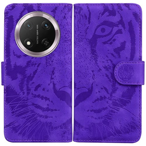 Funda de Cuero con Tapa y Estampado de Tigre para Honor X9C (Morado)