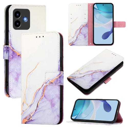 Funda de Cuero con Tapa para Cubot Note 40 Pt003 Diseño Mármol (Blanco y Morado)