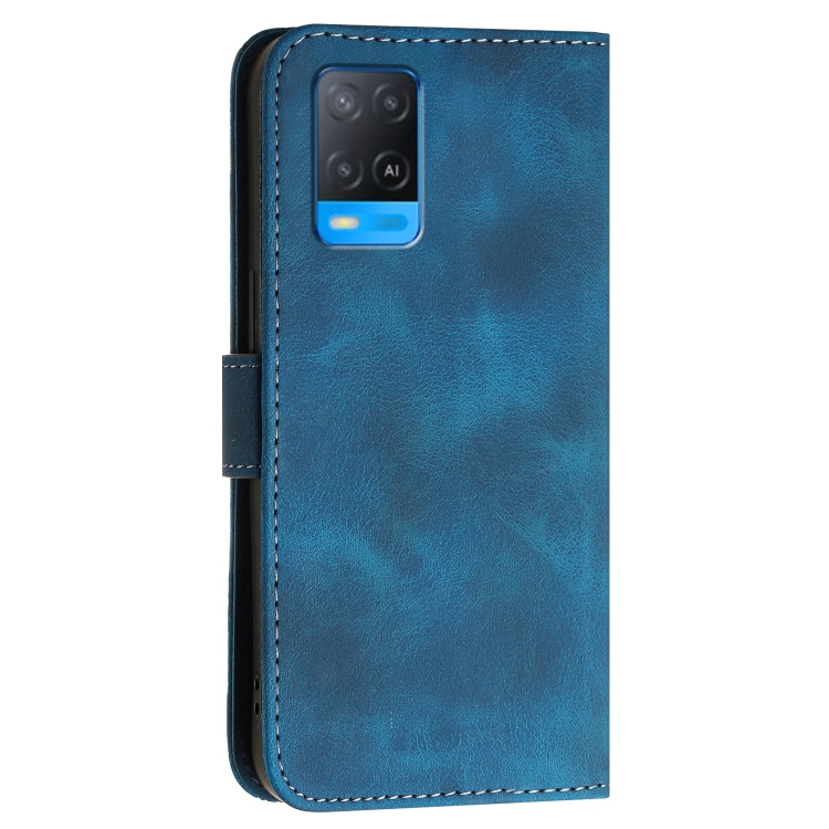 Funda de Cuero con Tapa y Cordón para Oppo A54 5G/A74 5G Yx0080 con Diseño En Relieve de Mariposa y Cuadrícula (Azul Oscuro)