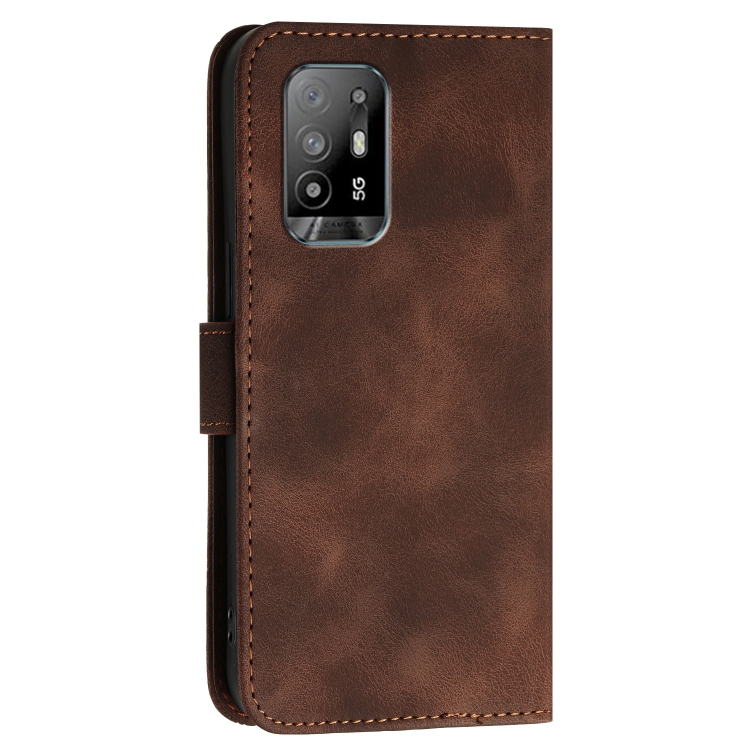 Funda de Cuero con Tapa y Cordón para Oppo A95 5G / Reno5 Z Yx0080 con Diseño En Relieve de Mariposa y Cuadrícula (Café)