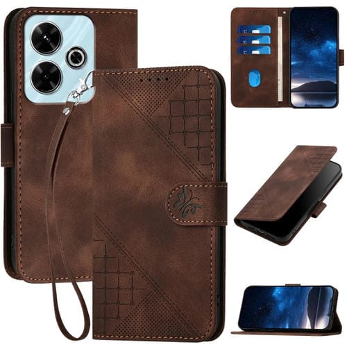 Funda de Cuero con Tapa y Cordón para Redmi 13 Yx0080 con Diseño En Relieve de Mariposa y Cuadrícula (Café)