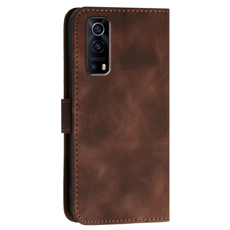 Funda de Cuero con Tapa y Cordón para Vivo Y72 5G / Iqoo Z3 Yx0080 con Diseño En Relieve de Mariposa y Cuadrícula (Café)