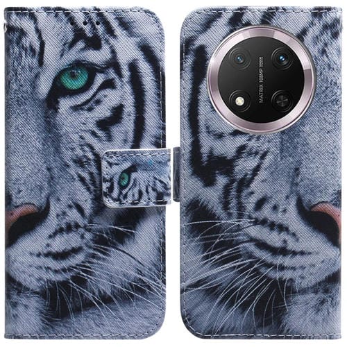 Funda de Cuero con Tapa y Dibujo a Color para Honor X9C (Tigre)