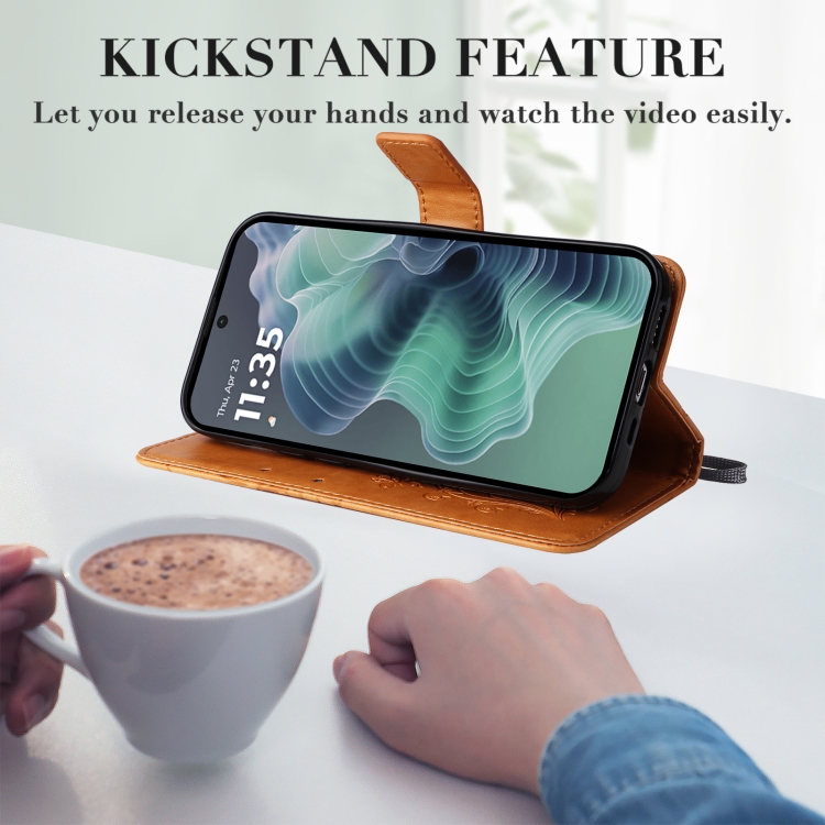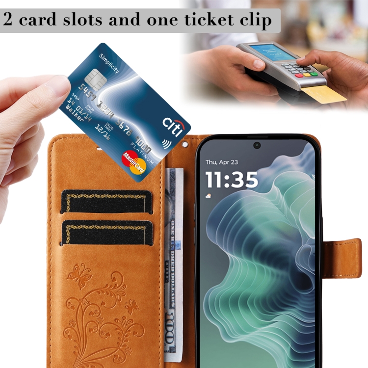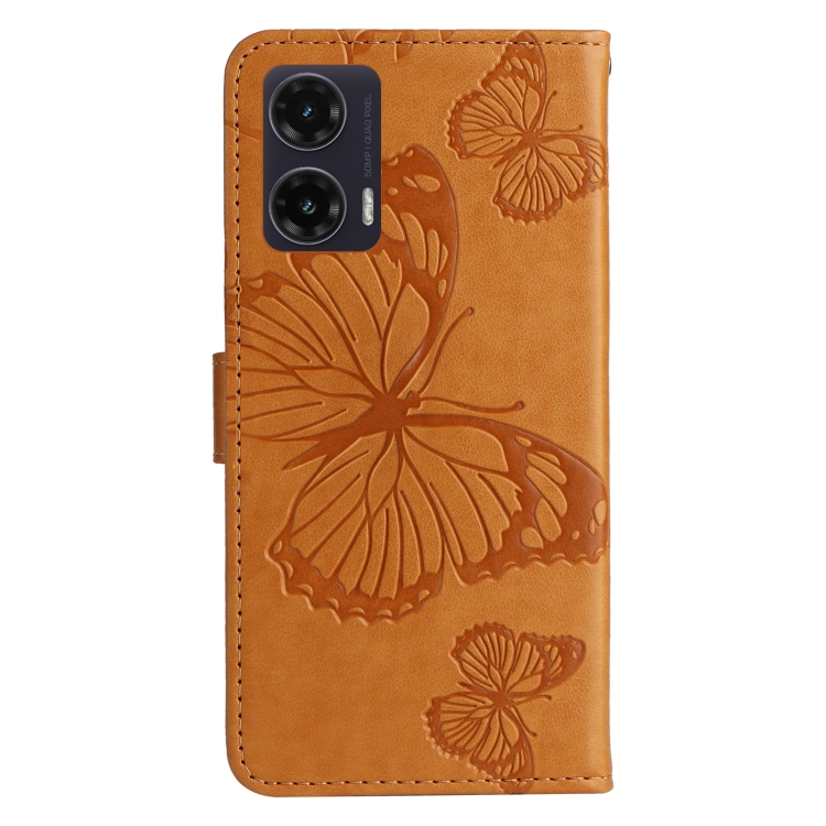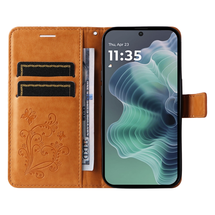 Funda de Cuero con Tapa y Mariposa en Relieve 3D para Motorola Moto G35 (Amarillo)