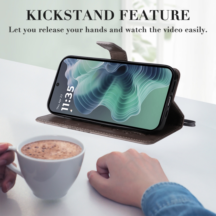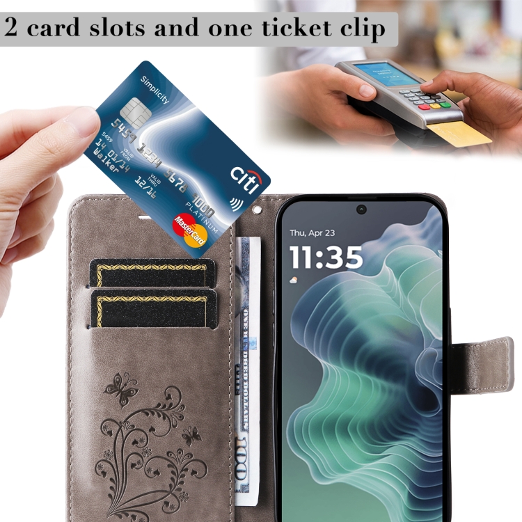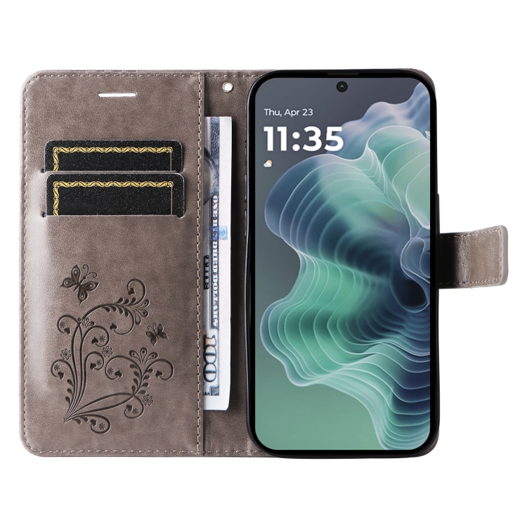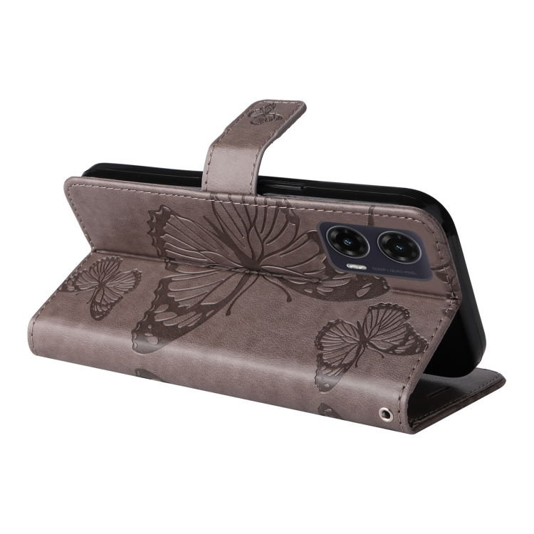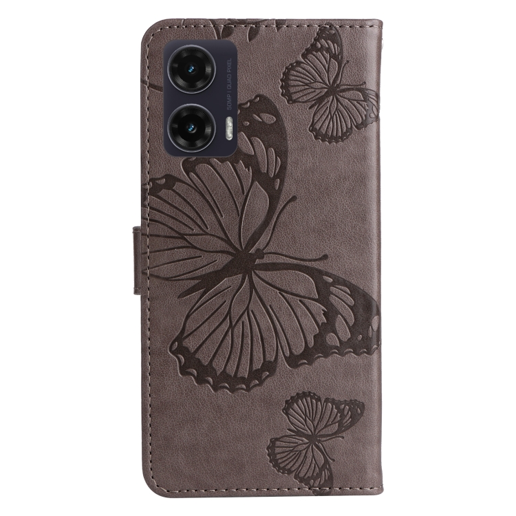 Funda de Cuero con Tapa para Motorola Moto G35 con Diseño de Mariposa en Relieve 3D (Gris)