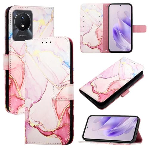Funda de Cuero con Tapa y Diseño de Mármol Pt003 para Vivo Y02A / Y02 / Y11 2023 / Y02T (Oro Rosa)