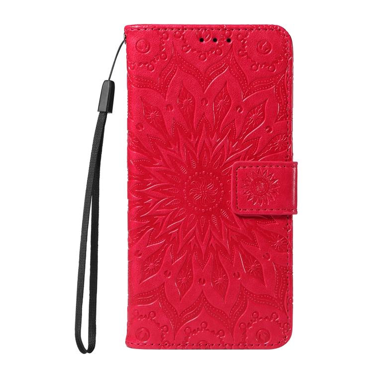 Funda de cuero con tapa y estampado de girasoles en relieve para Honor 400 Global (156,5 mm) (Rojo)