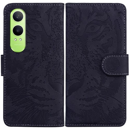 Funda de Cuero con Tapa y Estampado de Tigre para Oppo K12X (Negra)