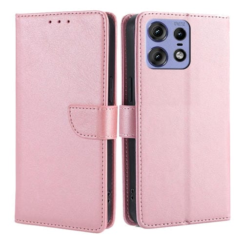 Funda de Cuero con Tapa y Hebilla Textura Becerro para Motorola Edge 50 Pro 5G (Oro Rosa)
