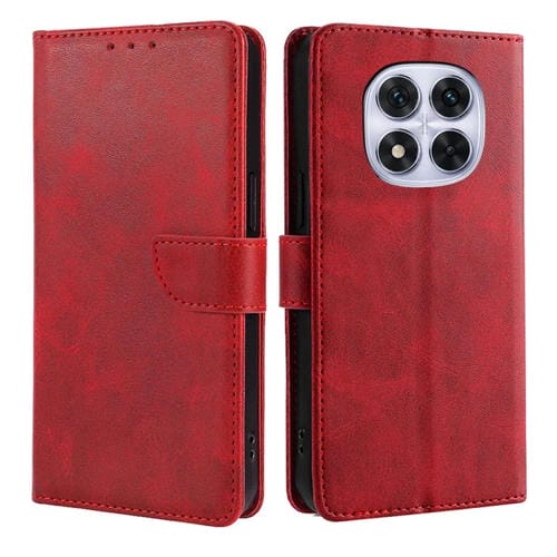 Funda de Cuero con Tapa y Hebilla con Textura de Becerro para Redmi Note 14 Pro 5G (Rojo)