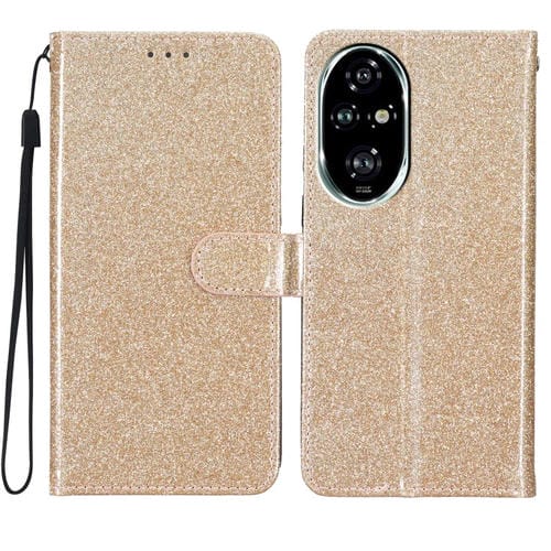 Funda de Cuero con Tapa y Purpurina para Honor 200 Pro (Dorada)