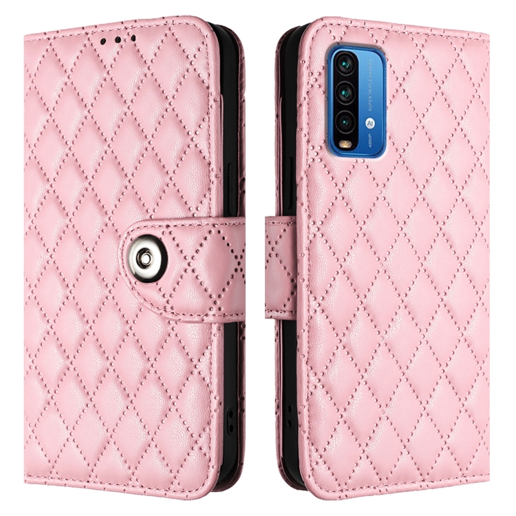 Funda de Cuero con Tapa y Textura Rombal Global para Redmi 9 Power/9T con Cordón (Rosa)