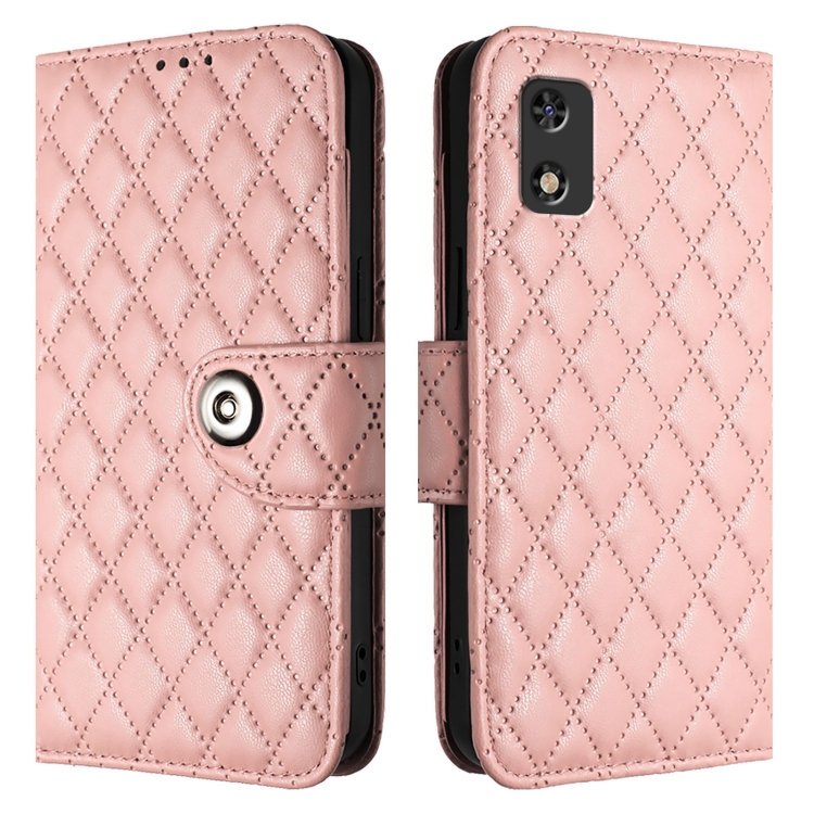 Funda de Cuero para Tecno Pop 5C con Tapa y Textura Rombal con Cordón (Rosa Coral)