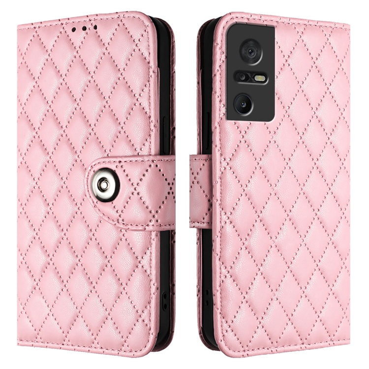 Funda de Cuero con Tapa para TCL 40 Se con Textura Rombal y Cordón (Rosa)