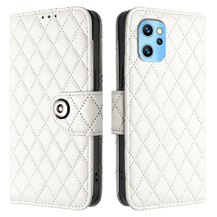 Funda de Cuero con Tapa y Textura Rombal para Umidigi Power 7 Max con Cordón (Blanco)
