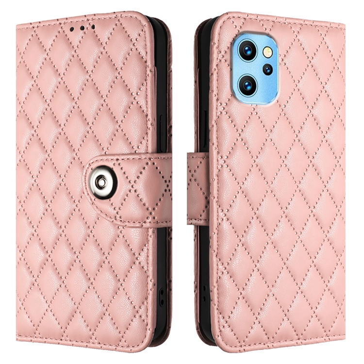 Funda de Cuero con Tapa y Textura Rombal para Umidigi Power 7 Max con Cordón (Rosa Coral)