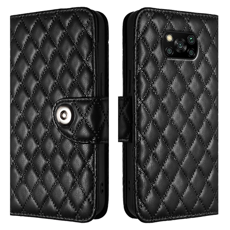 Funda de Cuero con Tapa y Textura Rómbica para Xiaomi Poco X3 / X3 Nfc / X3 Pro con Cordón (Negro)