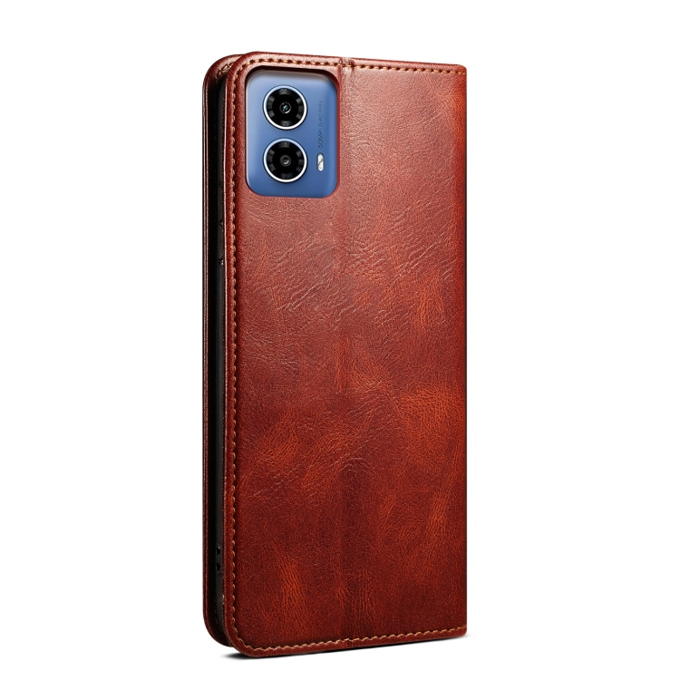 Funda de Cuero Motorola Moto G35 con Textura Crazy Horse y Cera de Aceite (Marrón)