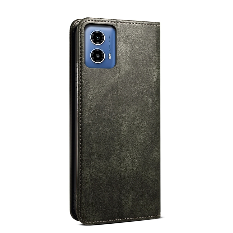 Funda de Cuero Crazy Horse con Cera de Aceite para Motorola Moto G35 (Verde)