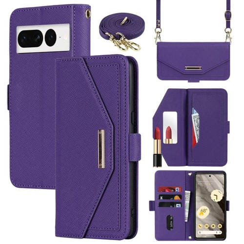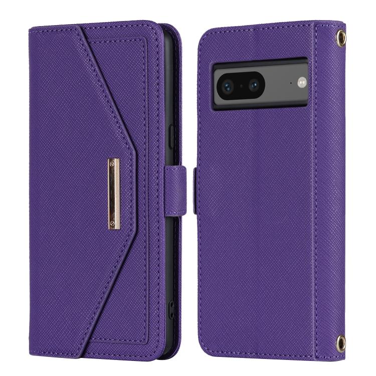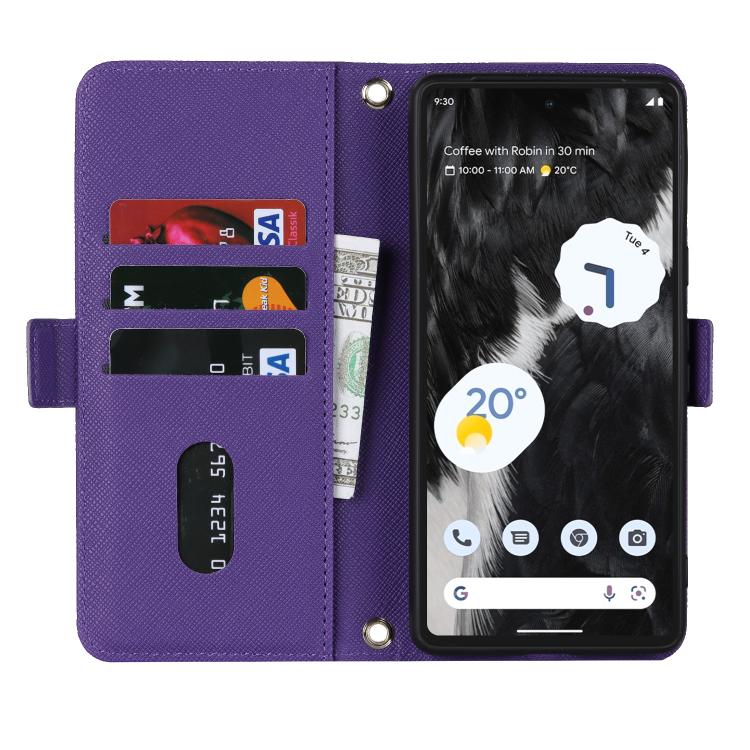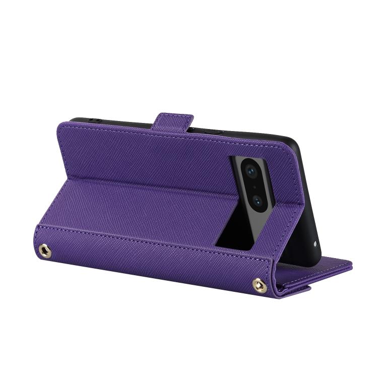 Funda de Cuero con Textura Cruzada y Cordón para Google Pixel 7 (Morado)