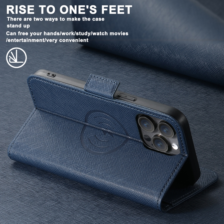 Funda Cuero Suteni J08 para iPhone 16 Pro Max con Textura Cruzada y Soporte (Azul)